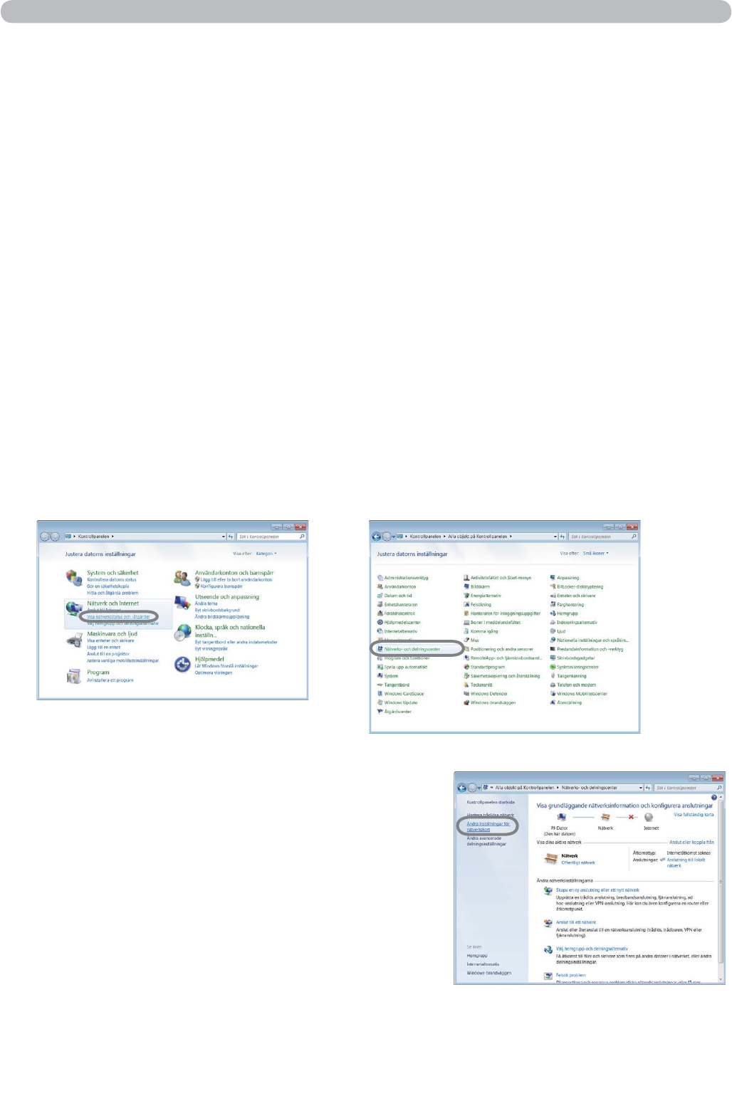 När ikonerna i fönstret “Kontrollpanelen” visas klickar man på “Nätverks- och