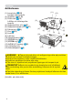 om vätska kommer in i projektorn kan detta orsaka brand, elfara och defekter I