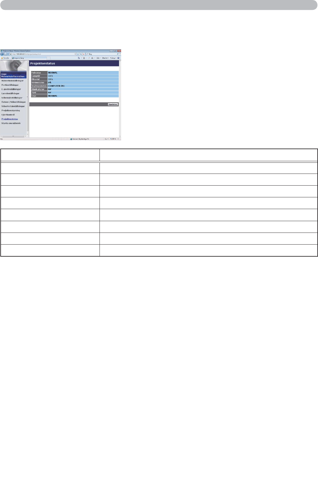 3.1 Webbkontroll för projektor (fortsättn.)