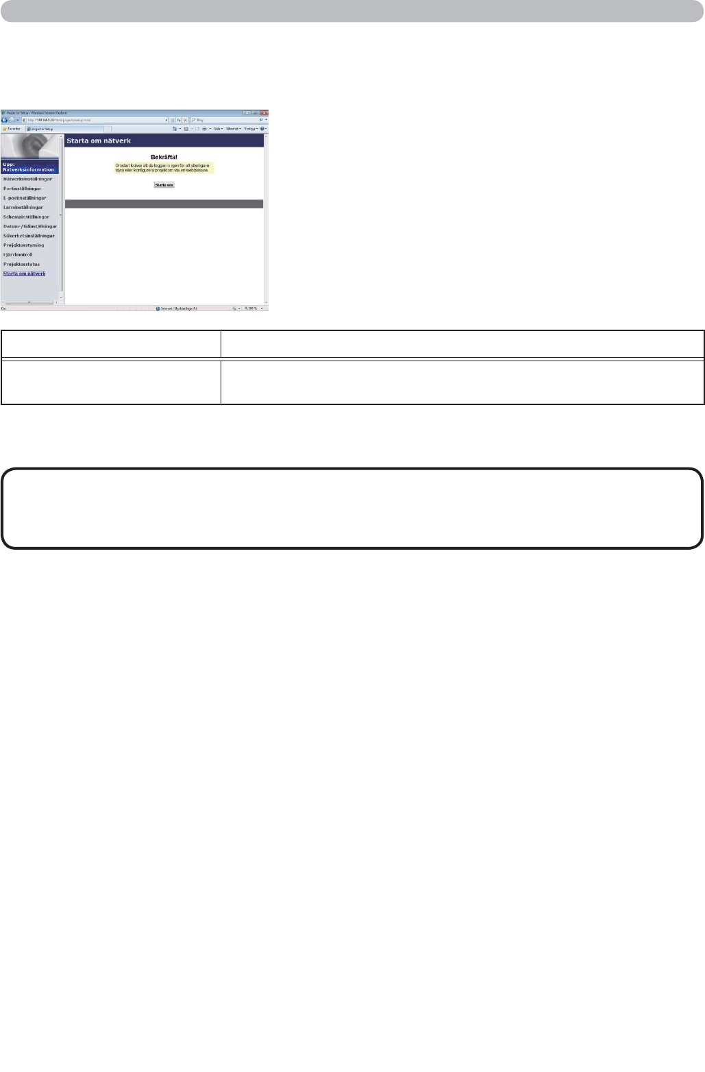 Startar om projektorns nätverksanslutning.