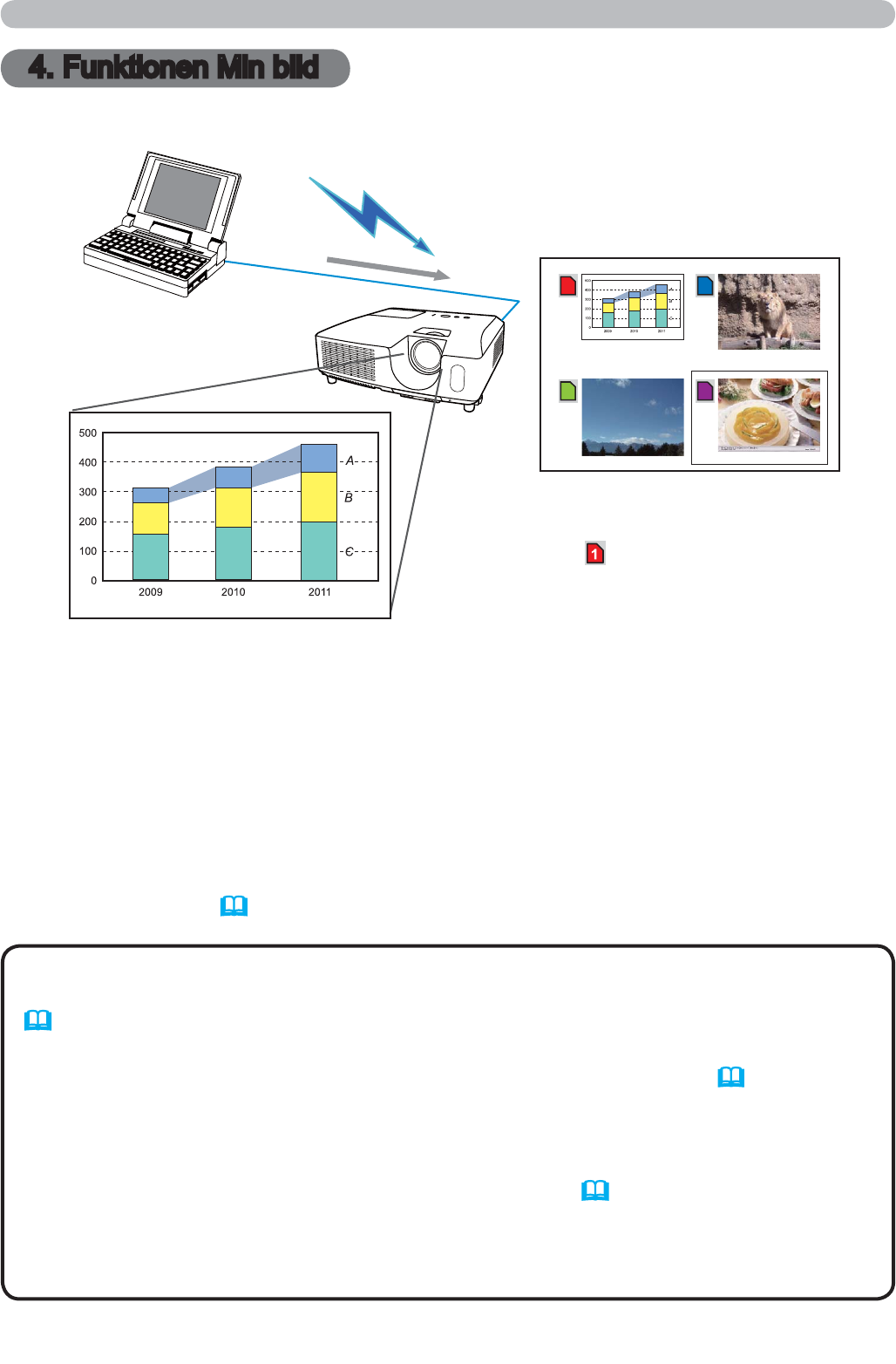 Projektorn kan visa stillbilder som överförs via nätverket.