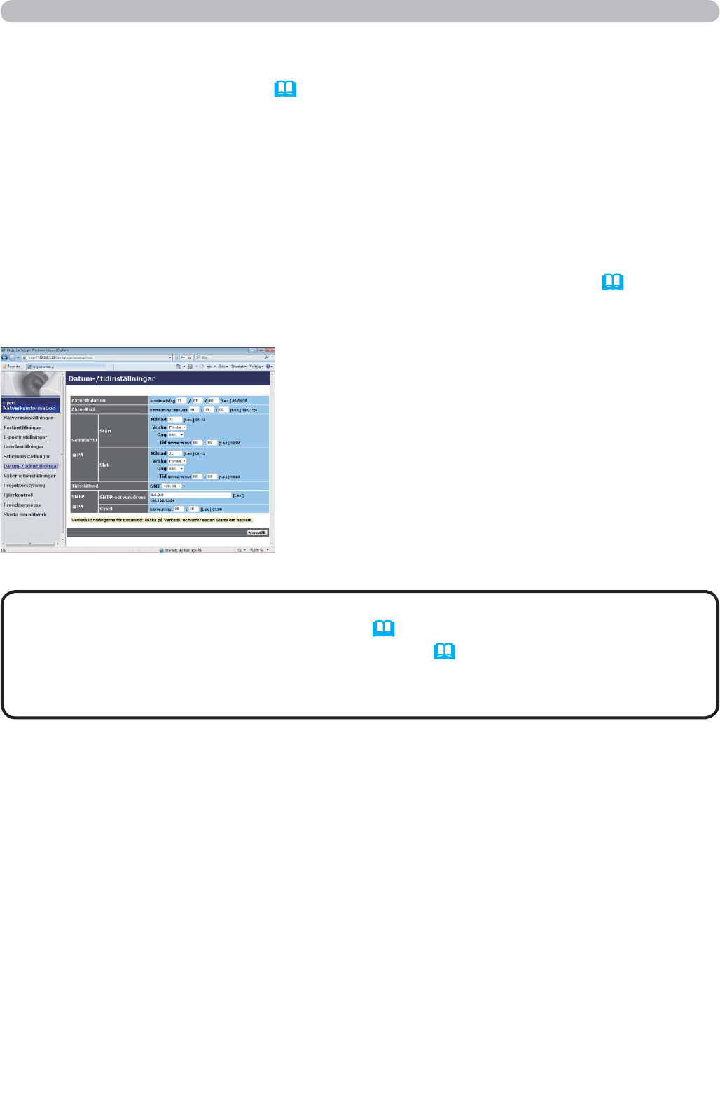 Datum-/tidsinställningar kan ändras via en webbläsare.