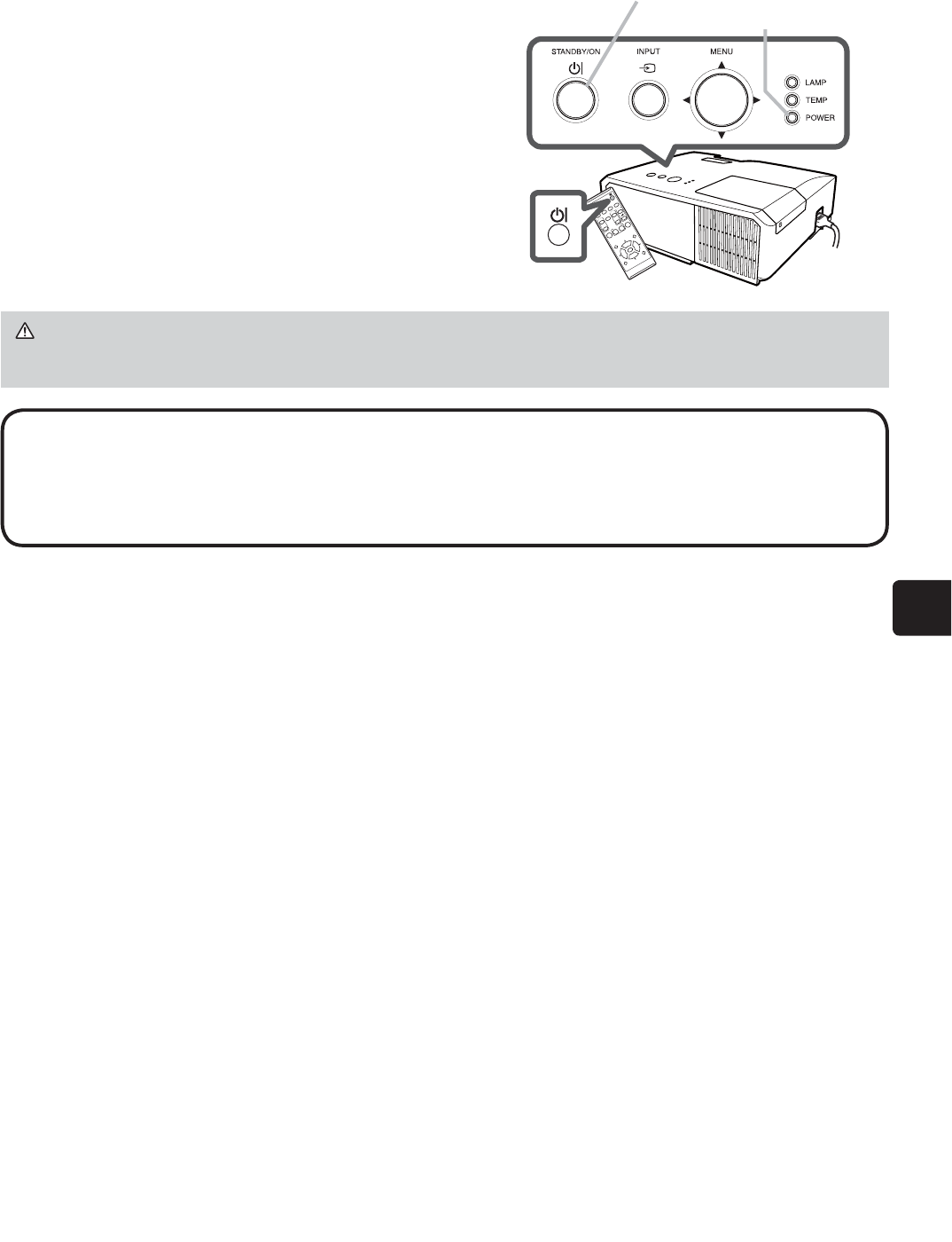 VARNING ►Ett starkt ljus sänds ut när projektorn är på. Titta inte in i linsen