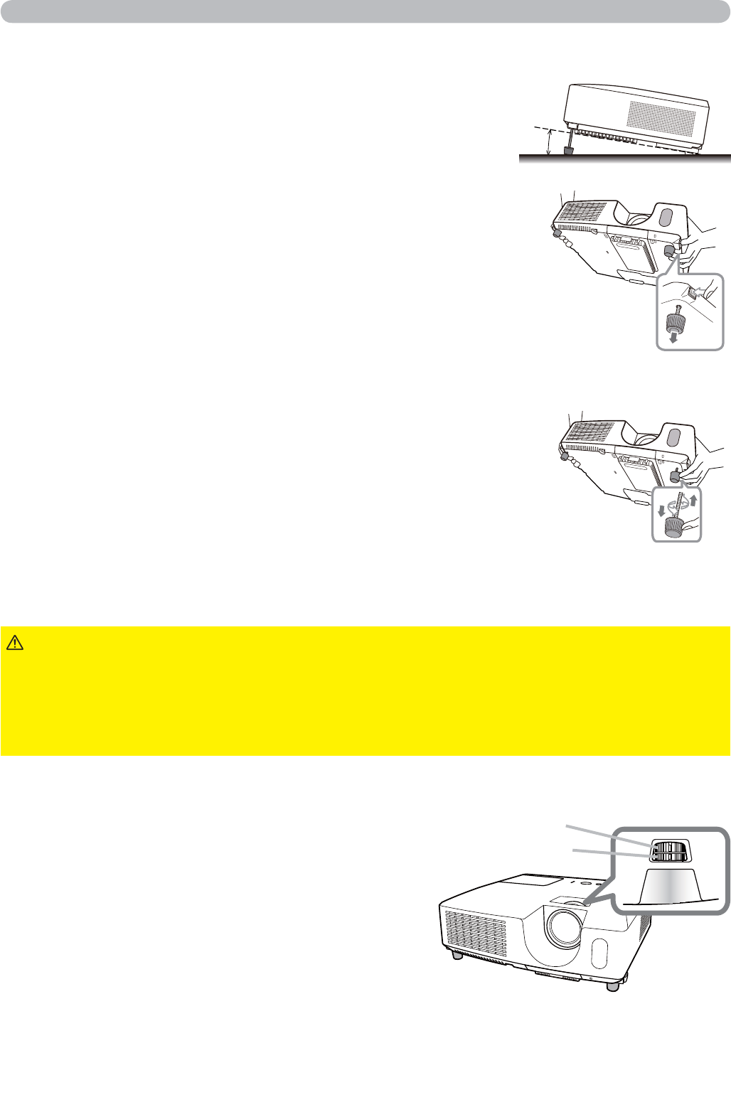►Manövrera inte höjdjusterknapparna utan att hålla i projektorn