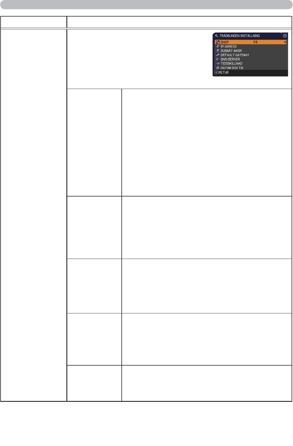 Denna funktion kan endast användas när DHCP är