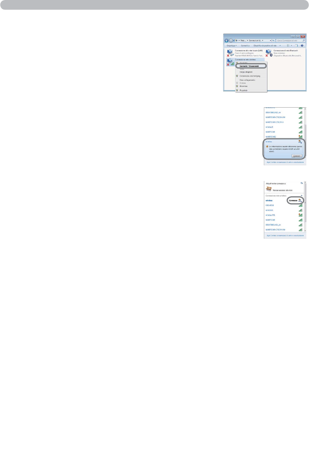 “Connessione rete wireless” per aprire il menu e