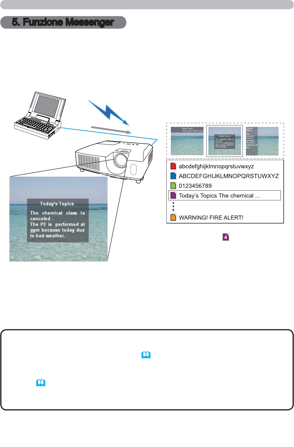 Il proiettore è in grado di visualizzare i dati di testo trasferiti tramite la rete sullo