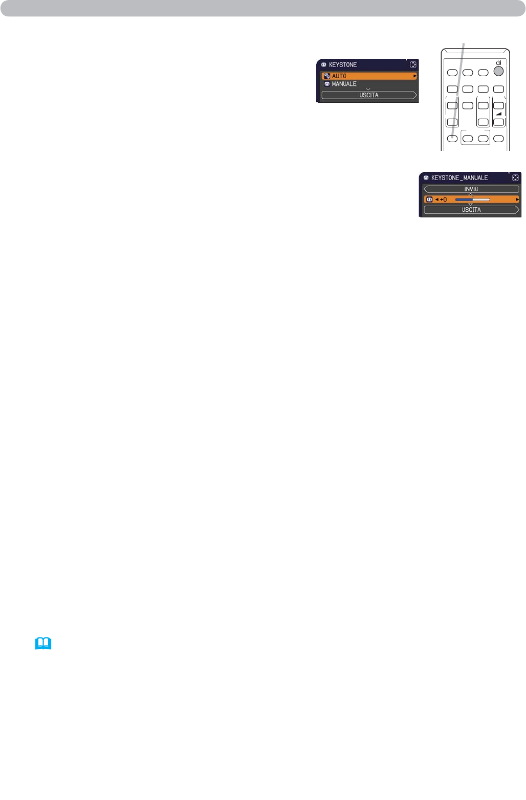 Durante l'attivazione o disattivazione della correzione KEYSTONE, lo schermo
