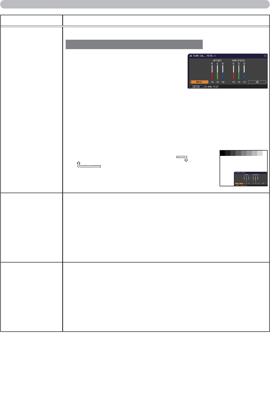Servirsi dei pulsanti ▲/▼ per modificare la temperatura del colore.