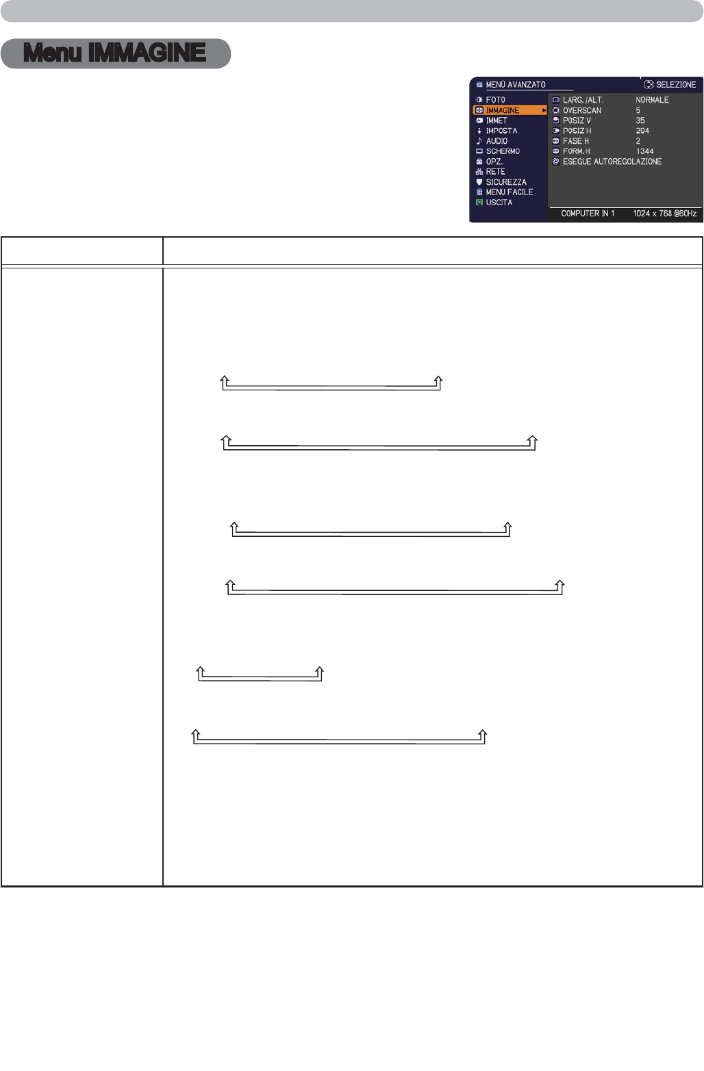 Servirsi dei pulsanti ▲/▼ per modificare il rapporto tra larghezza e