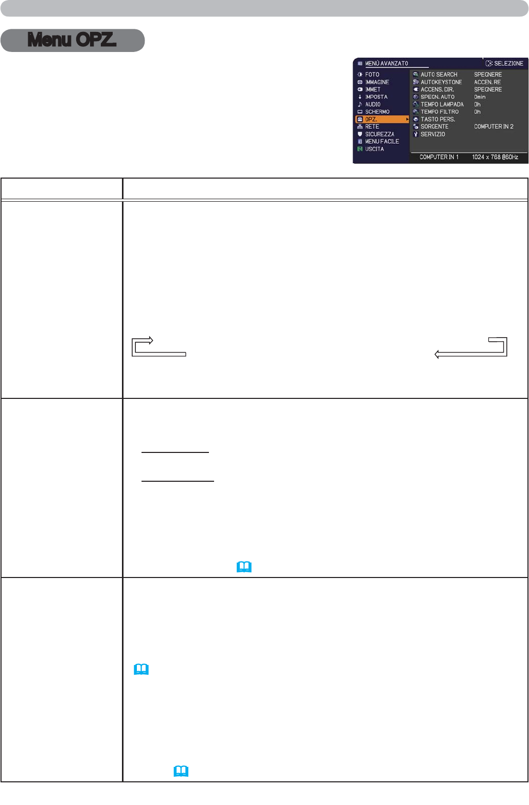 operazioni, il proiettore si spegne, anche se la funzione SPEGN.