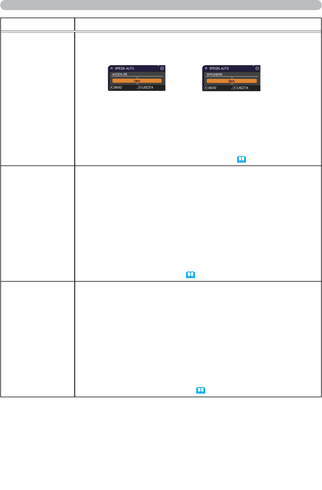 Se il periodo di tempo è impostato a 0, il proiettore non si spegne in automatico.