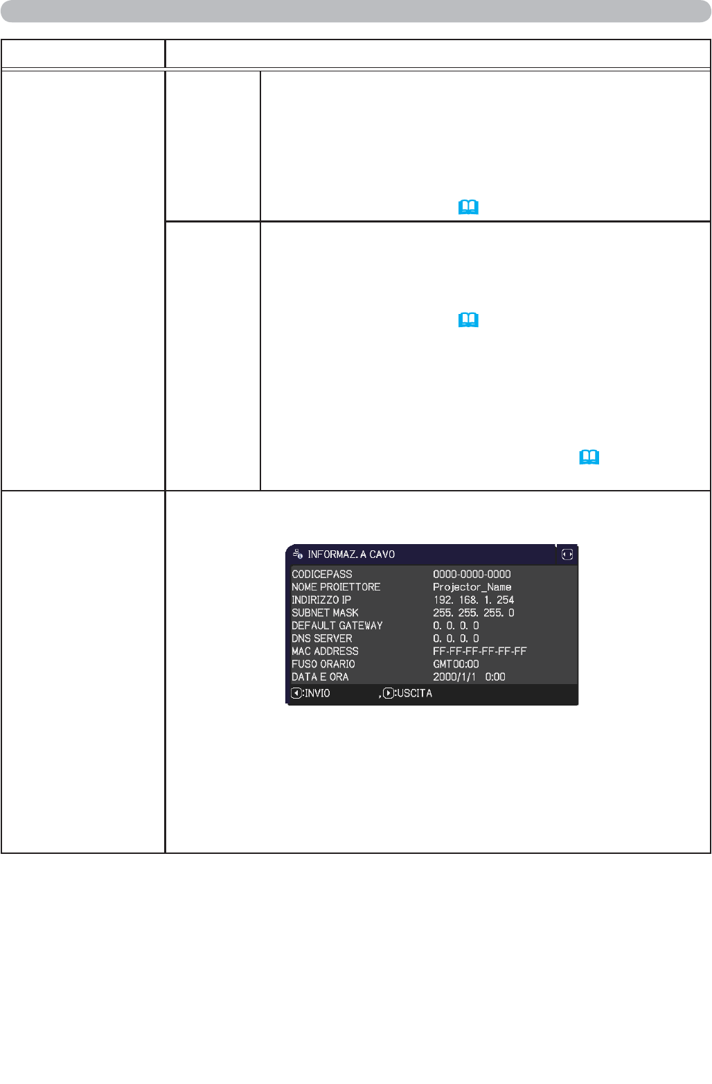 • Solo i primi 16 caratteri del NOME PROIETTORE vengono
