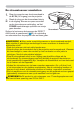 ►Raak de lens niet aan rond de lampbehuizing en de uitlaatopeningen tijdens