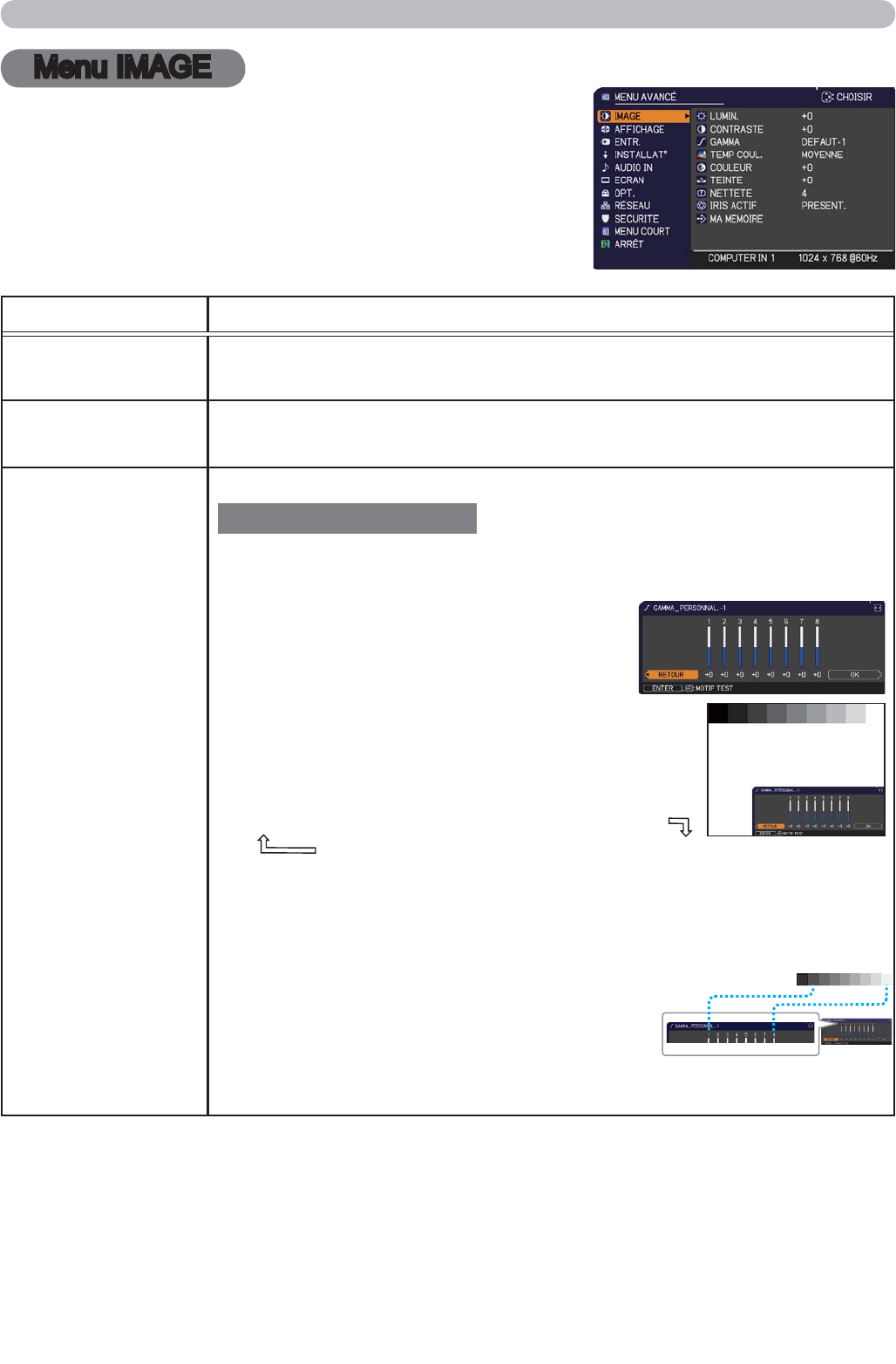 A partir du Menu IMAGE, vous pouvez accéder aux