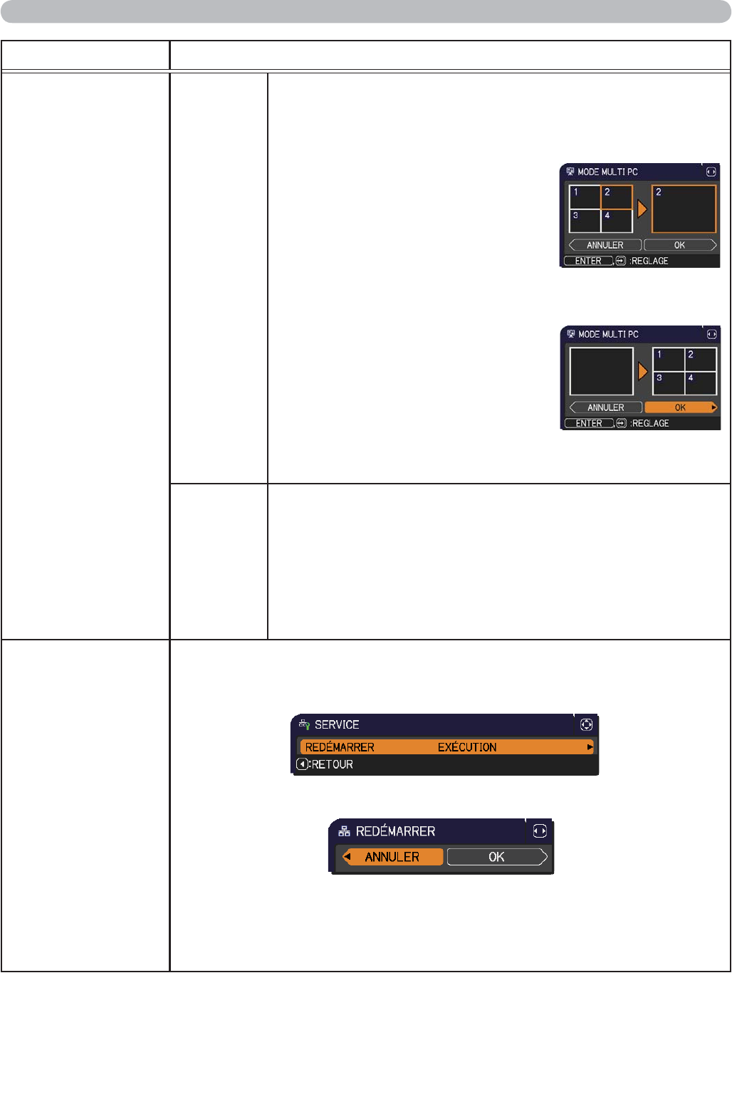 Après avoir choisi REDÉMARRER EXÉCUTION, le menu RÉSEAU