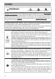 Sicherheitsvorkehrungen (Fortsetzung) HINWEIS Über Verbrauchsteile. Die Lampe, LCD-Panele, Polarisationsfilter und anderer optischer Komponenten sowie Luftfilter und Kühlgebläse haben unterschiedliche Lebensdauern. Es kann erforderlich wrede, diese Teile nach längerer Verwendung auszutauschen. • Diese Produkt ist nicht für lange ununterbrochene Verwendung konstruiert.