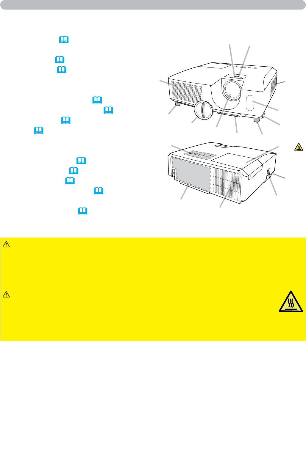 ►Titta inte in i objektivet och projektorns öppningar när lampan är på.