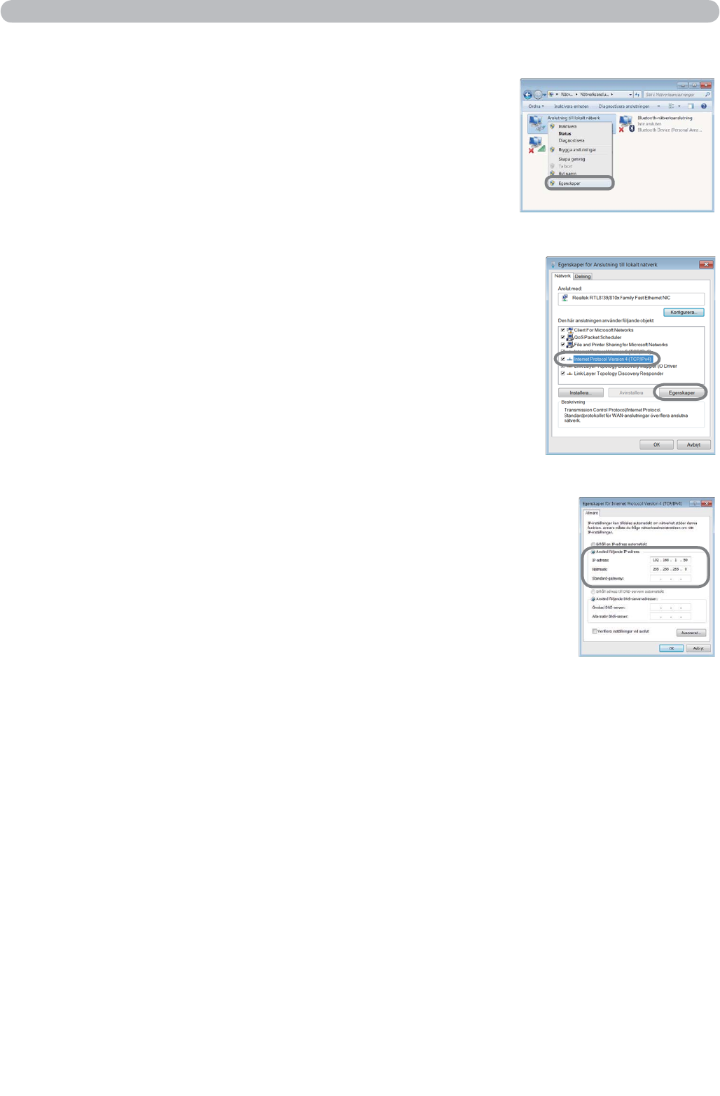 Välj “Använd följande IP-adress” och konfigurera IP-adress,