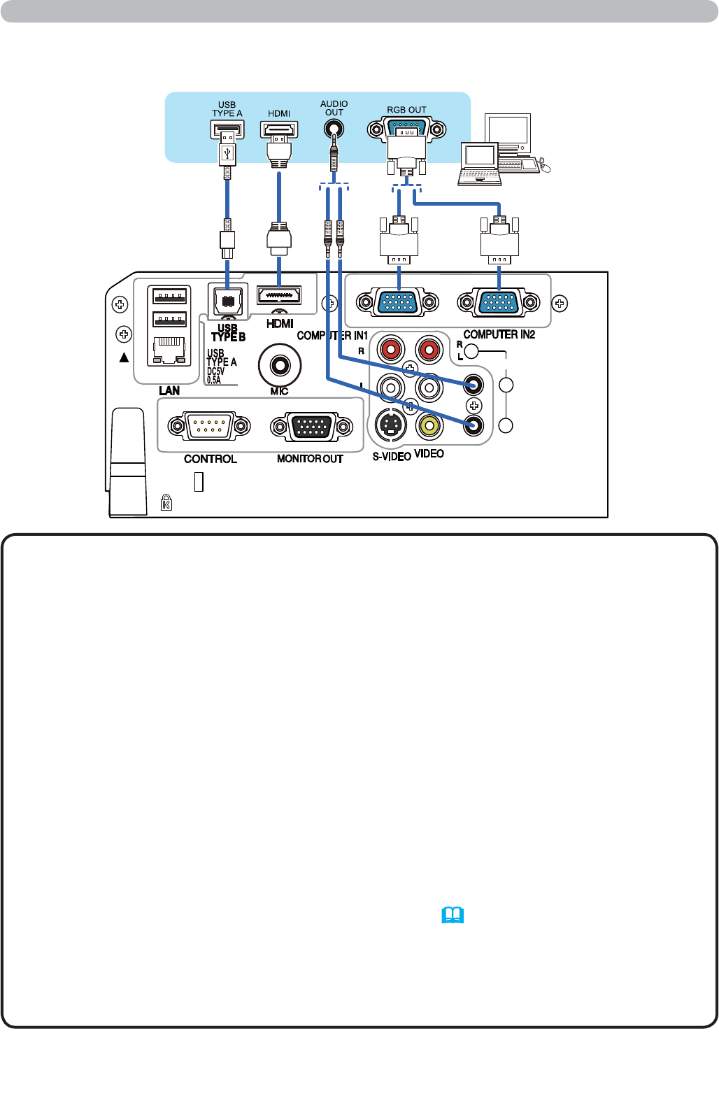 - Vissa signaler kan behöva en adapter för att ledas in i denna projektor.