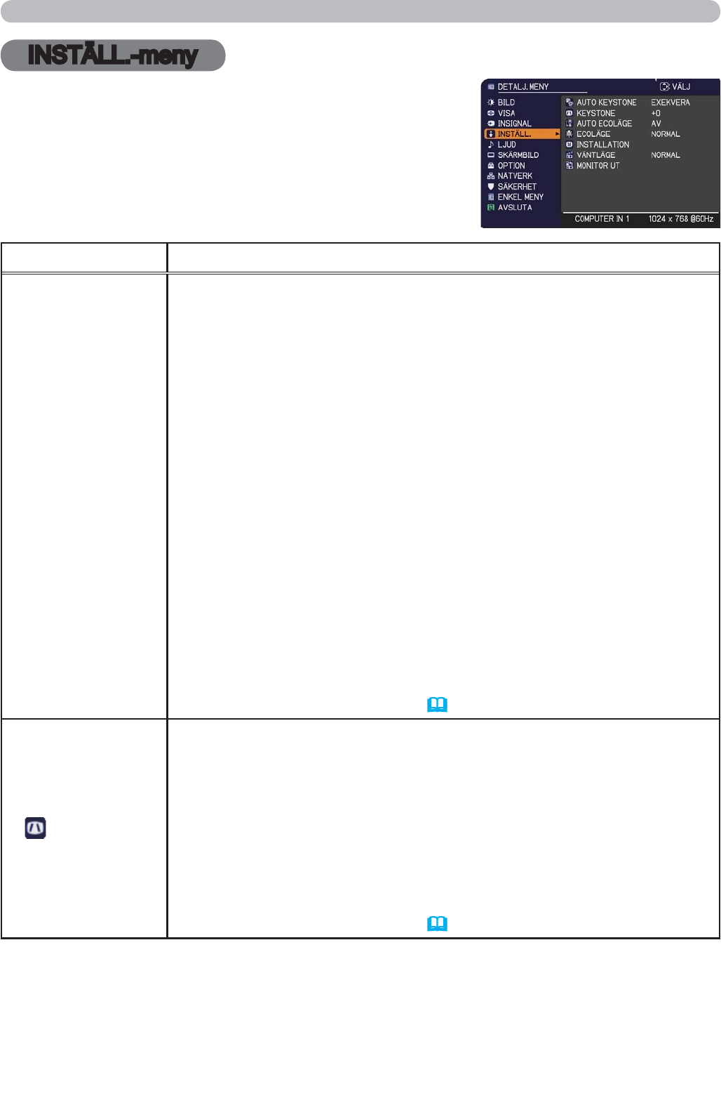 INSTALLATION i menyn INSTÄLL. kan det hända att denna