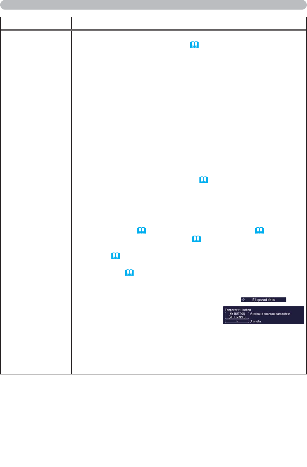 följande funktioner till den valda knappen. Tryck på ENTER eller