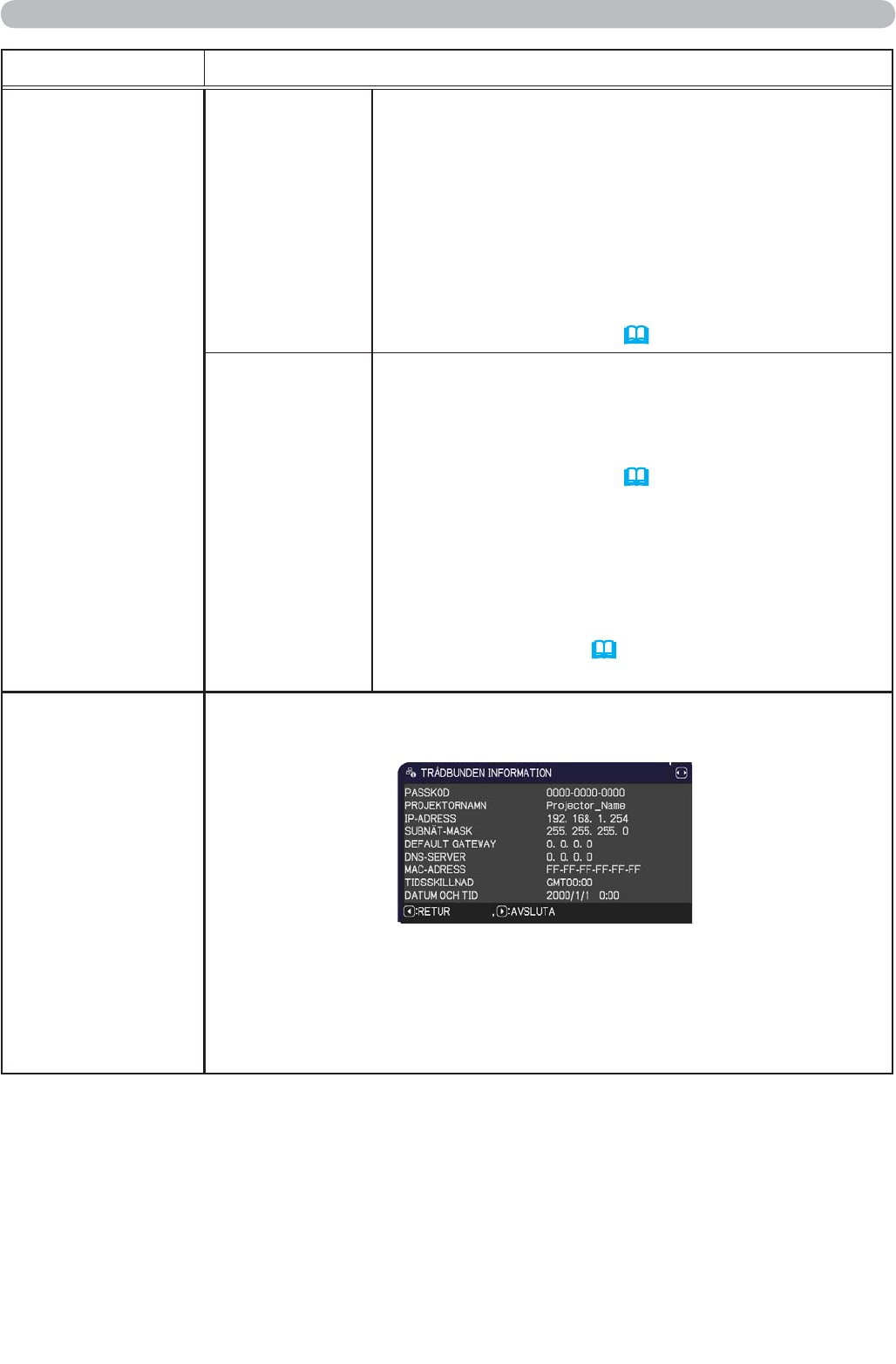 “0.0.0.0” när DHCP är PÅ och projektorn inte får någon adress från