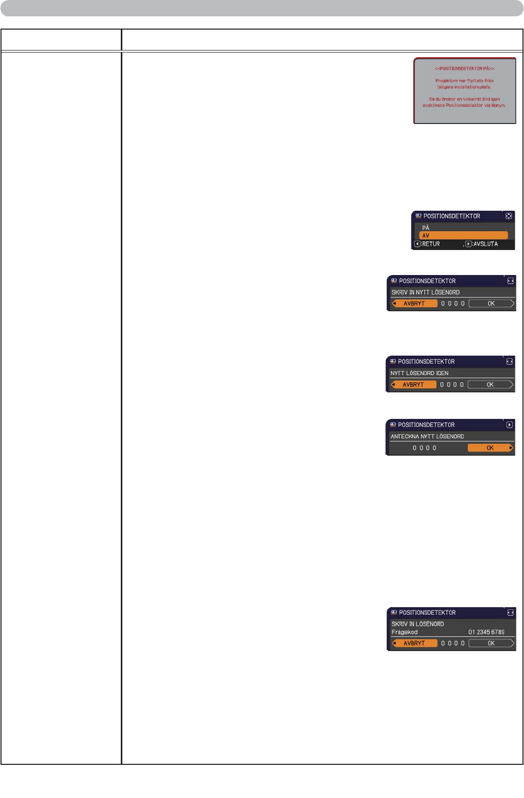 • Glöm inte bort ditt lösenord för POSITIONSDETEKTOR.