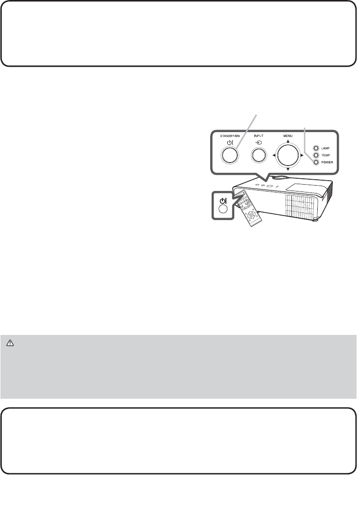 Kiinnitä linssin suojus sen jälkeen, kun POWER-merkkivalo on syttynyt