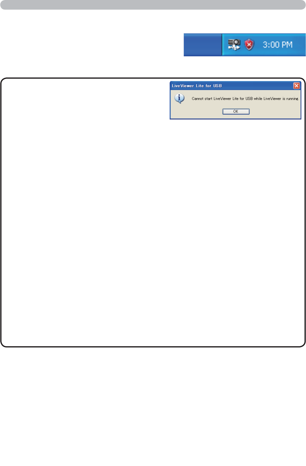 USB pendant que “LiveViewer” est en cours d'exécution, le message suivant
