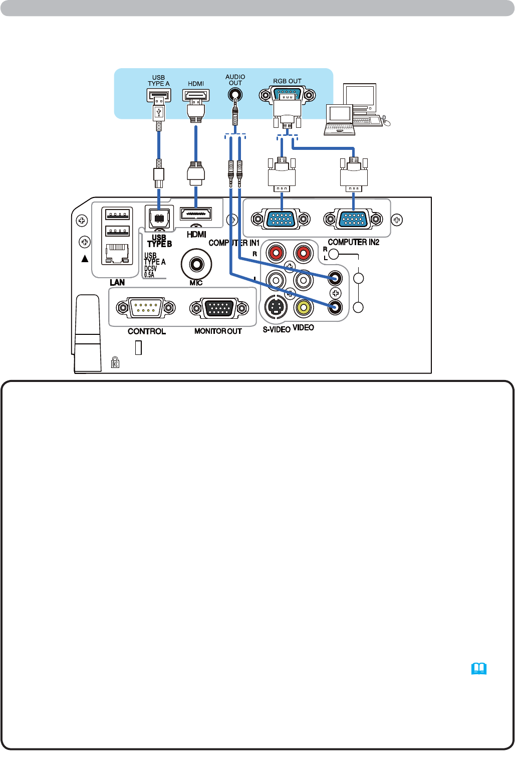 • Si vous connectez ce projecteur et un ordinateur portable, il vous faudra émettre