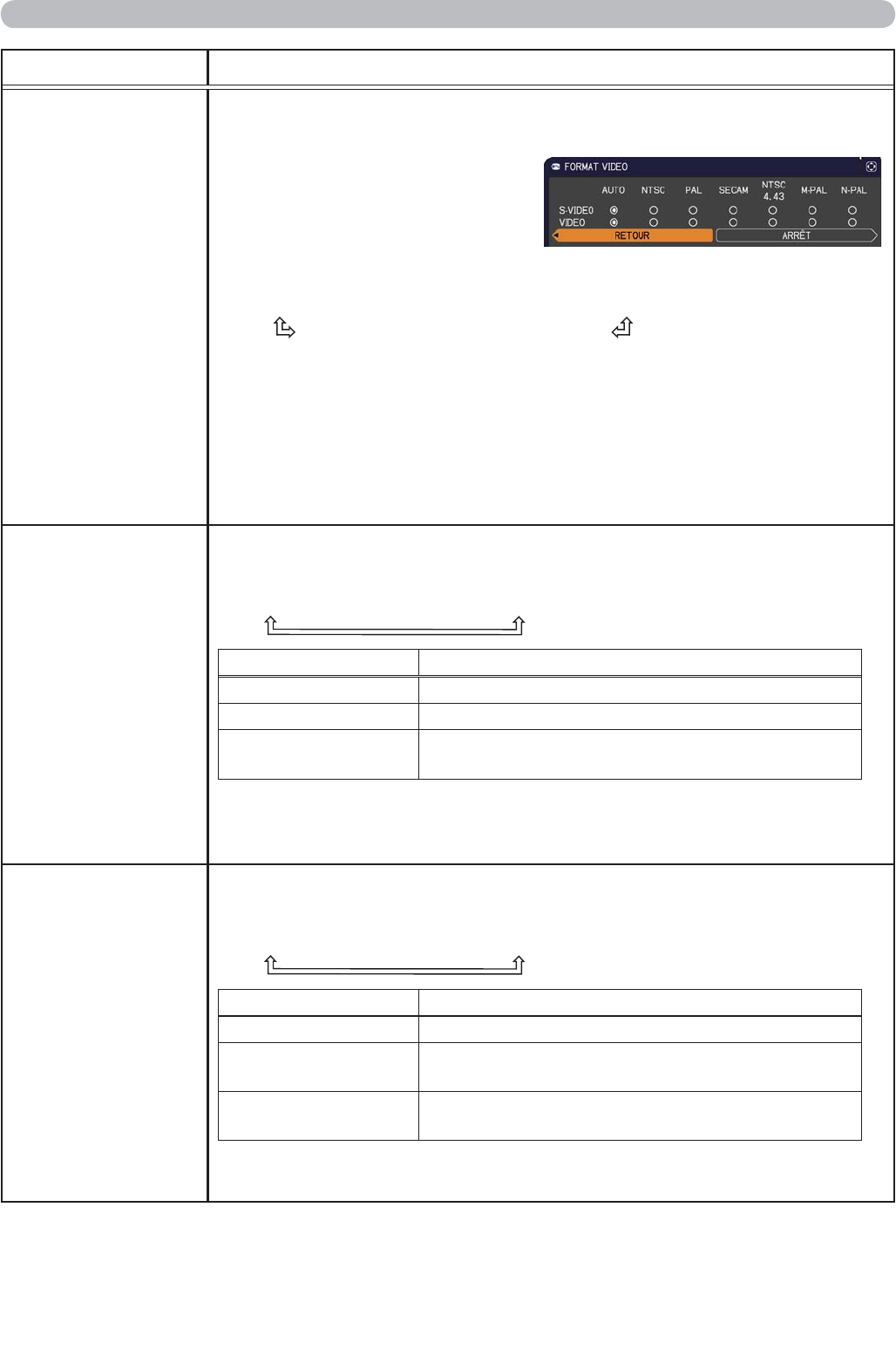 • Cette fonction est exécutée uniquement pour un signal vidéo