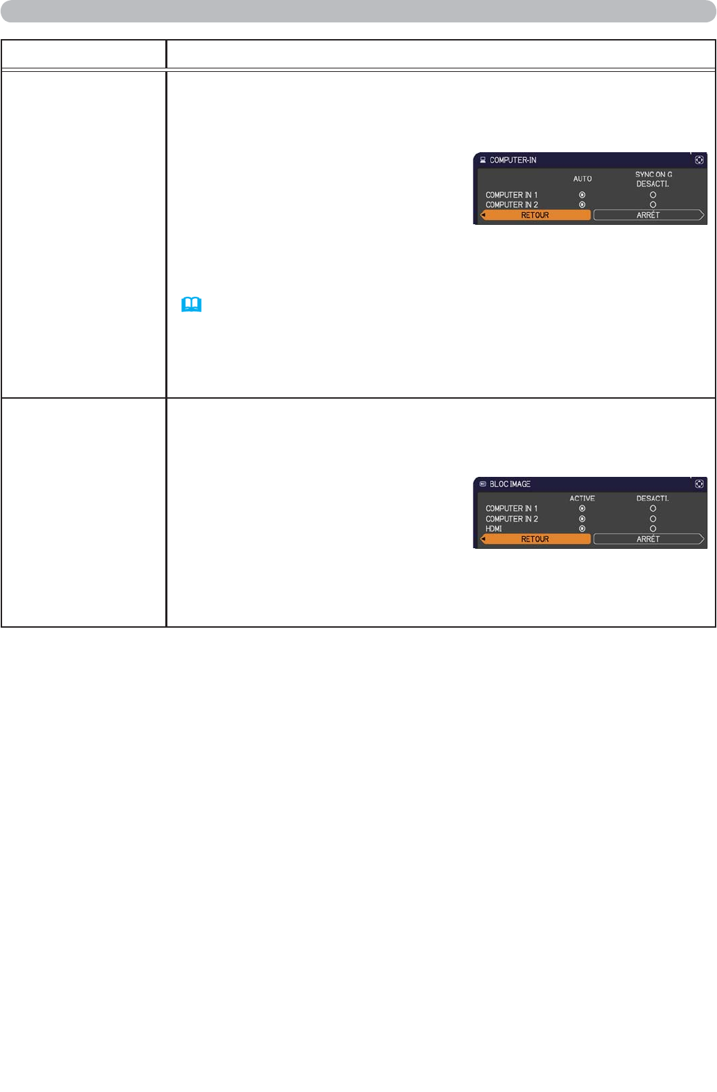 • En mode AUTO, l’image peut être déformée avec certains signaux