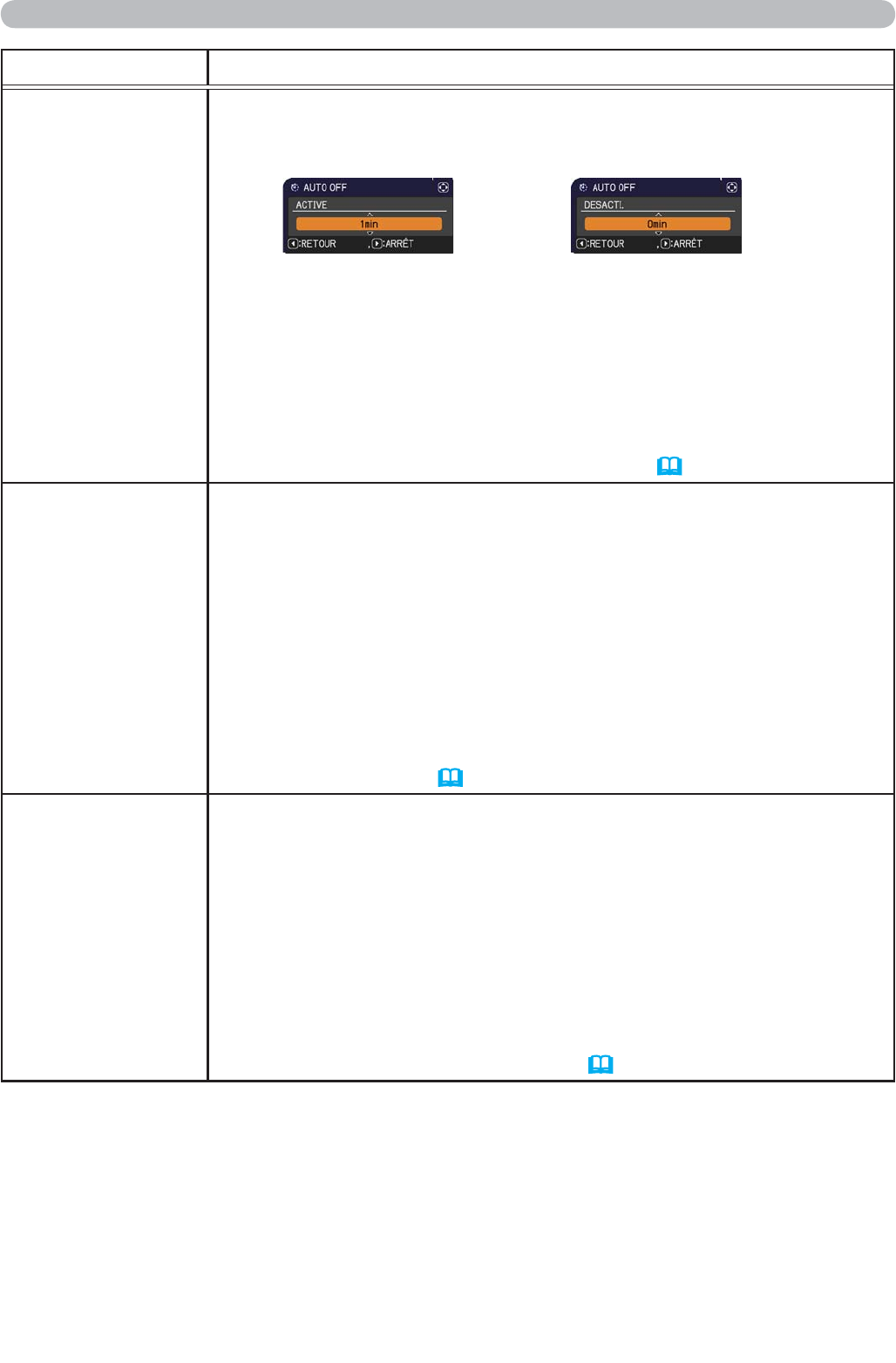 Quand le temps spécifié est 0, la mise hors tension automatique n’a