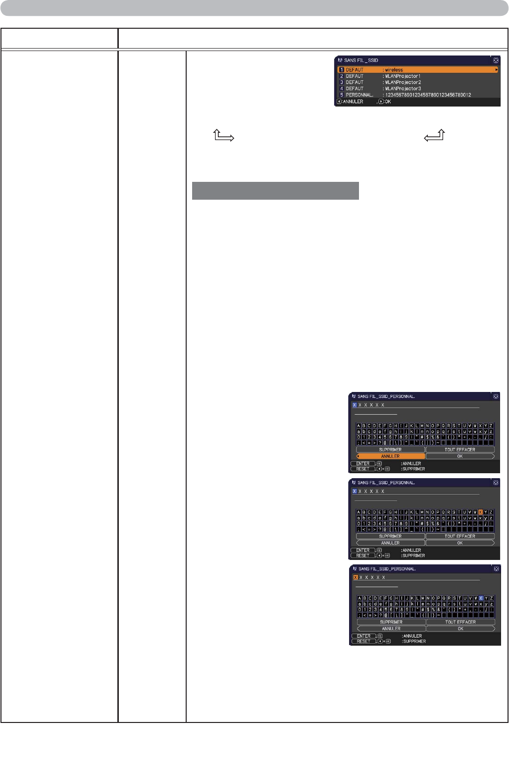 effacés. SSID peut utiliser jusqu'à 32 caractères.