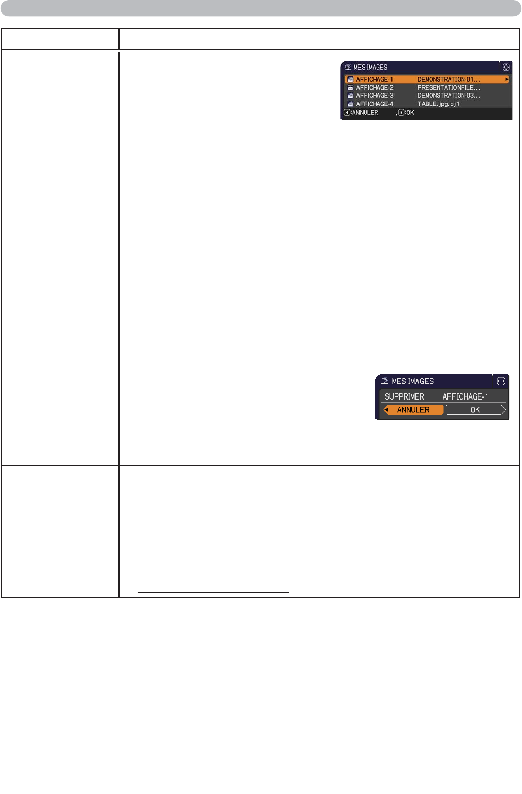 IMAGES au moyen des touches ▲/▼, (Fonction Mes images