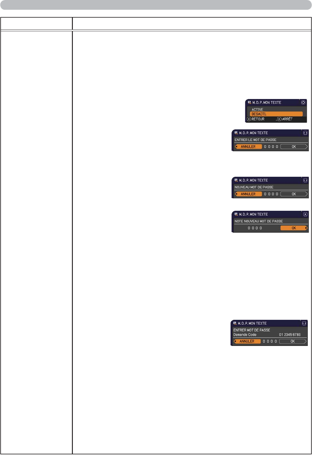 3-2 Choisir DESACTI. pour afficher la boîte de dialogue ENTRER MOT DE