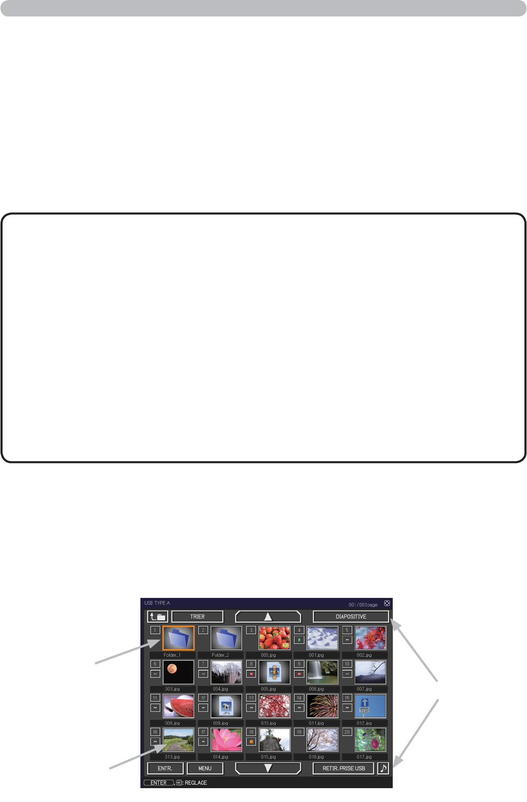 Le mode Thumbnail affiche des images stockées dans un dispositif de stockage USB sur