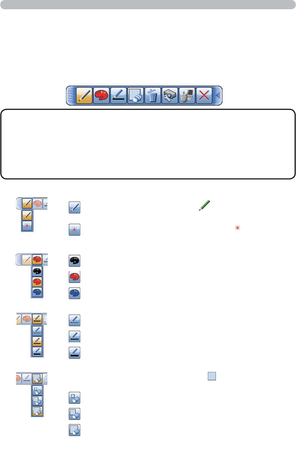 de dessin. Si vous touchez ou cliquez sur une icône sur la barre d’outils, les