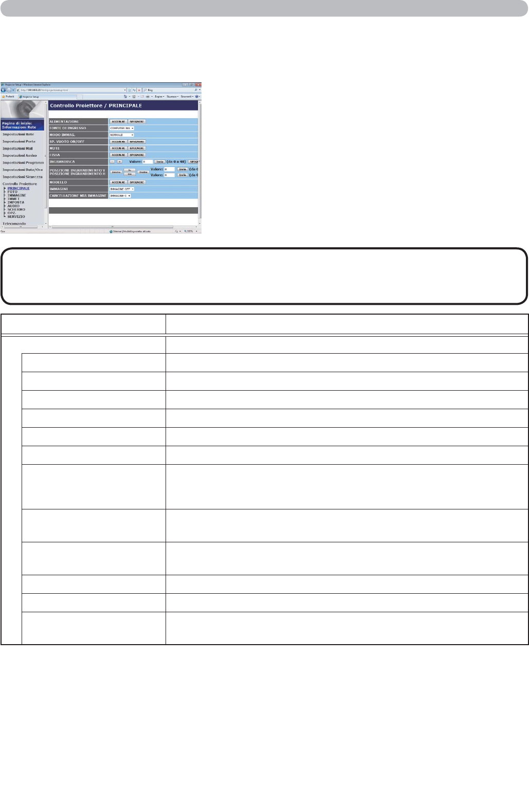 3.1 Controllo web proiettore (continua)