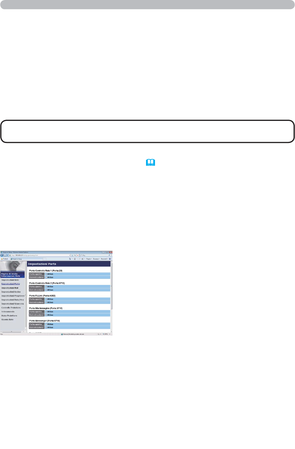 • Il controllo comandi è disponibile solo tramite la porta specificata