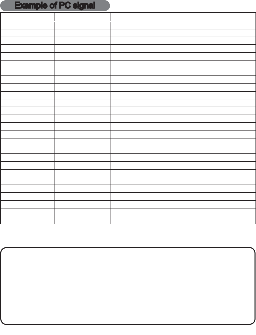 Although the projector can display signals with resolution up to UXGA (1600x1200), the signal will be