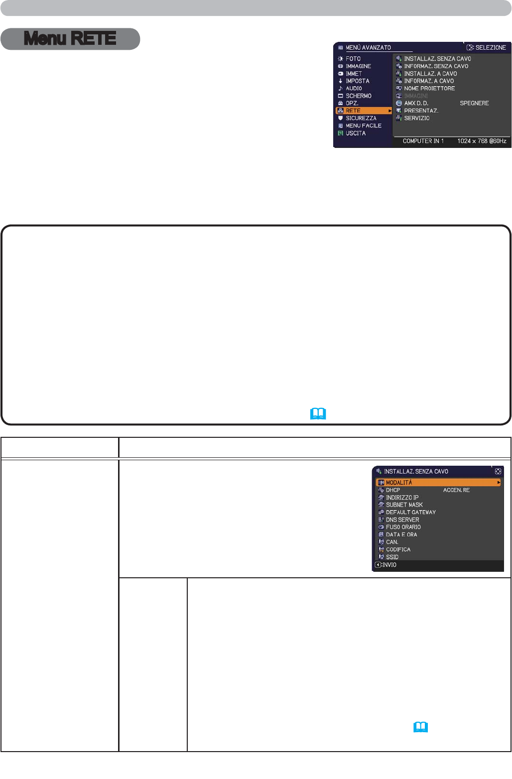 • Per utilizzare la funzione di rete senza fili del presente proiettore, è