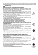Sicherheitsvorkehrungen (Fortsetzung) HINWEIS Über Verbrauchsteile. Die Lampe, LCD-Panele, Polarisationsfilter und anderer optischer Komponenten sowie Luftfilter und Kühlgebläse haben unterschiedliche Lebensdauern. Es kann erforderlich wrede, diese Teile nach längerer Verwendung auszutauschen. • Diese Produkt ist nicht für lange ununterbrochene Verwendung konstruiert.