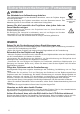 Sicherheitsvorkehrungen (Fortsetzung) WARNUNG Beachten Sie hohe Temperaturen des Projektors. Bei eingeschalteter Lampe werden hohe Temperaturen erzeugt. Diese können einen Brand oder Verbrennungen verursachen. Lassen Sie in Haushalten mit Kindern besondere Vorsicht walten. Vermeiden Sie eine Berührung des Objektivs, der Lüfter und der Ventilationsöffnungen während oder unmittelbar nach dem Gebrauch, um eine Verbrennung zu verhüten. Achten Sie auf die Ventilation.