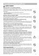 Lue nämä Turvallisuusohjeet ensin. Projektori Käyttäjän ohjekirja - Turvallisuusohjeet Kiitos, että olet ostanut tämän projektorin. VAROITUS • Lue projektorin käyttöohjekirjat ennen käyttöä jotta osaisit käyttää laitetta oikein. Laita ohjeet lukemisen jälkeen varmaan paikkaan myöhempää käyttöä varten. Tämän laitteen virheellinen käsittely saattaa aiheuttaa henkilövammoja ja vaurioita.