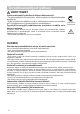 Turvallisuusohjeet VAROITUS Älä käytä projektoria ongelmien sattuessa. Epänormaalit toiminnot kuten savu, outo haju, ei kuvaa, ei ääntä, ylimääräinen ääni, vahingoittunut kuori tai osa tai johto, nesteiden tunkeutuminen tai vieraat esineet jne. voivat aiheuttaa tulipalon tai sähköiskun. Siinä tapauksessa kytke välittömästi virta pois ja irrota sen jälkeen verkkopistoke verkkovirrasta. Varmistettuasi, että savun tulo tai haju on päättynyt, ota yhteys jälleenmyyjääsi.