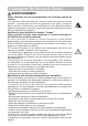 Lampe AVERTISSEMENT HAUTE TENSION HAUTE TEMPÉRATURE HAUTE PRESSION Le projecteur utilise une lampe en verre à vapeur de mercure à haute pression. Si vous secouez ou que vous éraflez la lampe ou que vous la touchez lorsqu’elle est chaude ou trop usée, elle risque de se briser en explosant bruyamment ou de se griller. Remarquez que chaque lampe a une durée de vie différente et qu’il arrive que certaines lampes explosent ou se grillent dès que vous les utilisez.