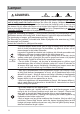 Part names (Navn på deler) Kontrollpanel (1) 67$1'%< 21-knapp ( 17) (2) MENU-knapp ( 24) 'HQ EHVWnU DY ¿UH PDUN¡UNQDSSHU (3) ,1387-knappen ( 18) (4) 32:(5-indikator ( 17, 71) (5) 7(03-indikator ( 71) (6) /$03-indikator ( 71) (6) (5) (4) (1) (2) (3) Bakpanel (1) Driftsstans-bryter ( 73) (2) Sikkerhetsspalte ( 9) (3) Sikkerhetssperre ( 9) (4) AC IN (Strøminntak) ( 13) (5) Nettbryter ( 17) (21) (1) (22) (2) (9) (14) (13) (17) (6) (20) (18) (7) (19) (6) 5*% -port ( 10) (7) 5*% * < % &B 3B 5 &5 35
