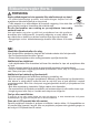 Sikkerhetsregler (forts.) NB: Angående komponentenes levetid. Lampe, LCD-panel, polarisatorer og andre optiske komponenter, i tillegg til luftfilter og kjølevifter har forskjellig levetid seg imellom. Disse komponentene må muligvis utskiftes etter lengre tids bruk av enheten. • Denne enheten er ikke tilvirket med henblikk på sammenhengende bruk over lang tid.